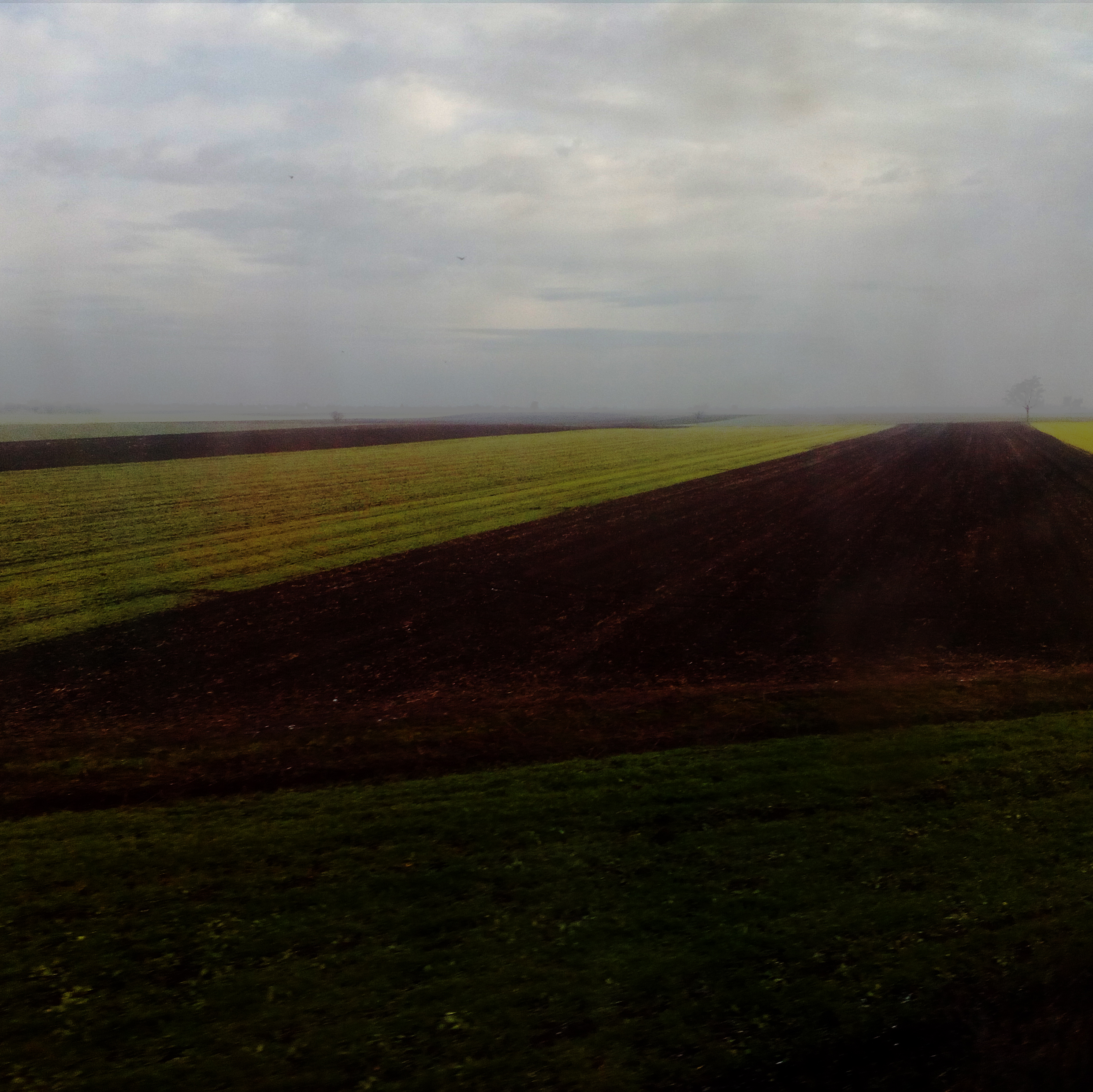 The train makes ineluctable progress. Troops, tanks and artillery move on a road. They slip over bridges of rusty pig iron. Communist stars are riveted into the trusses. Wood and coal smoke shroud the passing valleys. Villages are shrouded in icy fog. A highway has no traffic except for Mercedes-Benzes. Orchards of plum pose on the hills.