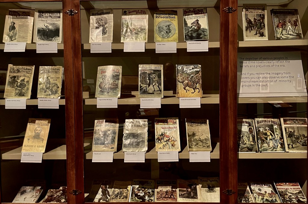 I perused cases of uniforms, guns and equipment, studied dioramas and mannequins, read letter excerpts and ephemera, sifted through the errata of a man and his show that spanned the birth of American exceptionalism. They’d tried to present the multicultural aspect to his roaring international Rough Rider cast in showbusiness, his rehabilitation of Native Americans who had been consigned to the dumpster of history, and his role as America’s first cultural ambassador touring America and Europe. None of those superlatives could cover up his role in the body count to win the West.
