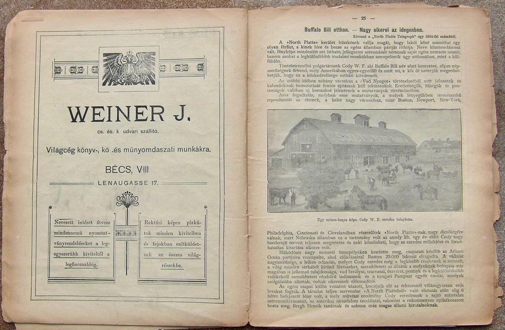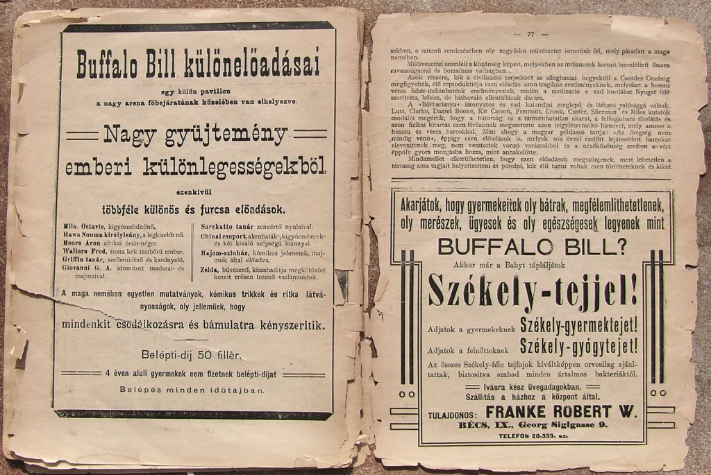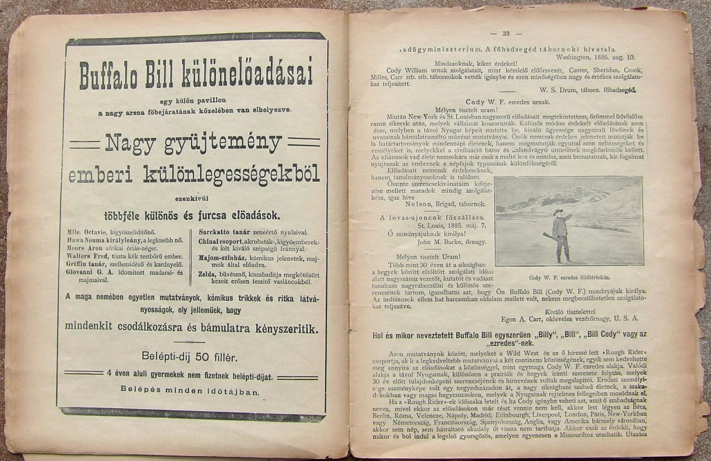 “I know about Buffalo Bill because local historians have been very active. We don’t have a full archive of newspapers or photographs from that period. Hungarians took it all after the war. But you know, last week, I bought part of a private collection of newspapers from 1906.”