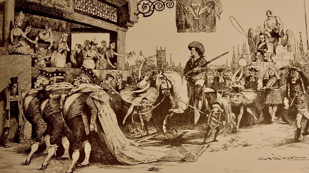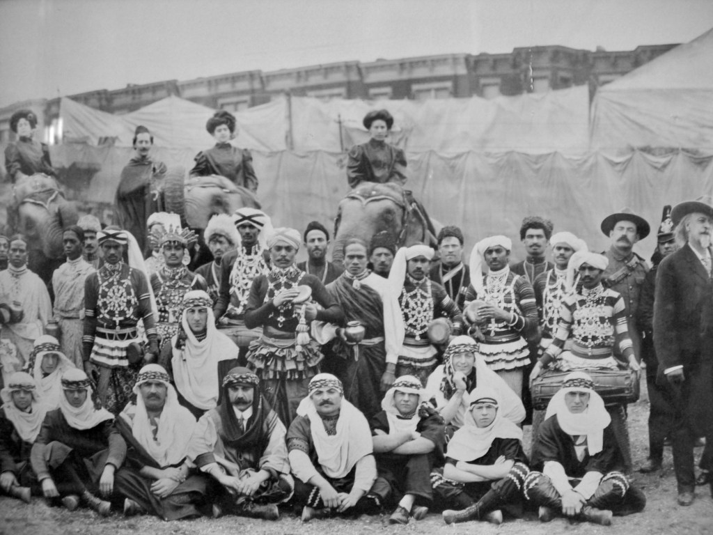 Cody was lionized with applause while Griffin entertained the crowds with his garbled French. With performers’ native languages ranging from Japanese to Lakota, Arabic to Russian, garbled language was a specialty and symbolic of the promise of the melting pot. In short, give up identity and culture for the nascent monsters of nationalism and global capitalism. The mechanism appeared quite innocent when backstage where the performers rubbed shoulders before joining the crowds to admire the luxury of Parisian arcades or wonder at the city’s illicit heart.